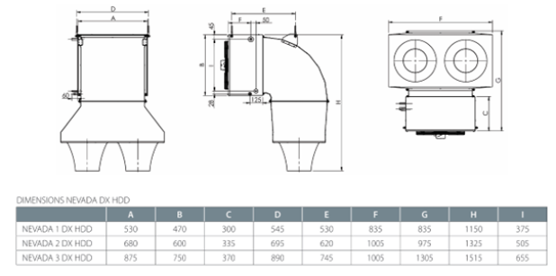 Les aérothermes Nevada DX sont conçus pour chauffer ou rafraîchir l'air des commerces, des locaux industriels et des entrepôts, ainsi que des salles de sport et des ateliers. Ils peuvent être combinés avec des unités extérieures de pompes à chaleur de différents fabricants fonctionnant au réfrigérant R410A ou R32. Elles sont disponibles en version murale (extension AA) ou encastrée (extension HDD).