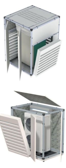 La couverture acoustique Silentcompact est conçue pour les unités extérieures des pompes thermiques, des climatiseurs et des unités de refroidissement avec ventilateurs axiaux et